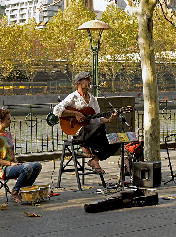 French guitarist busking along the banks of the Yarra River, Southbank Melbourne